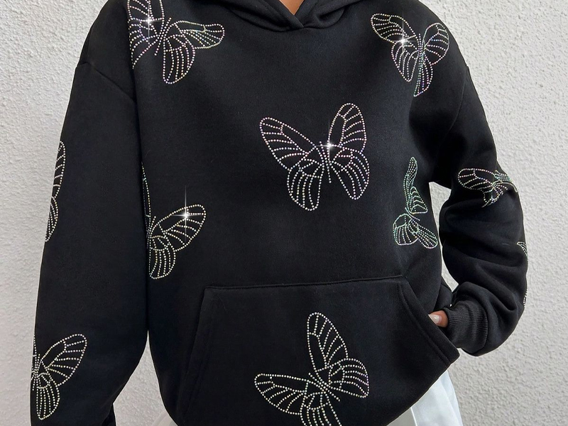 · Decorazioni con strass: ogni felpa è impreziosita da strass accuratamente disposti, che aggiungono un tocco glamour al modello streetwear. Le decorazioni catturano la luce da ogni angolazione, creando una delicata brillantezza che si adatta perfettamente al giorno e alla notte.